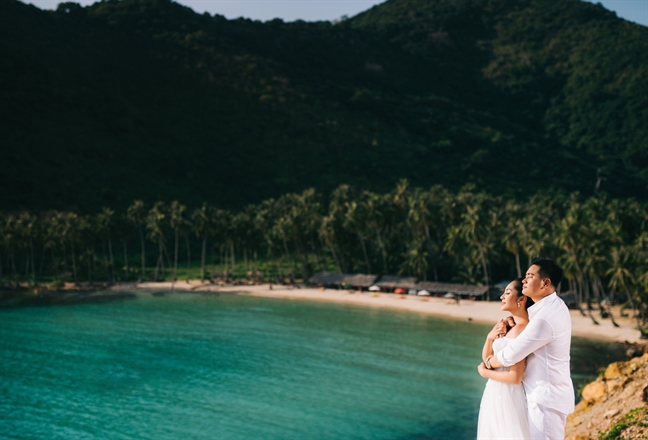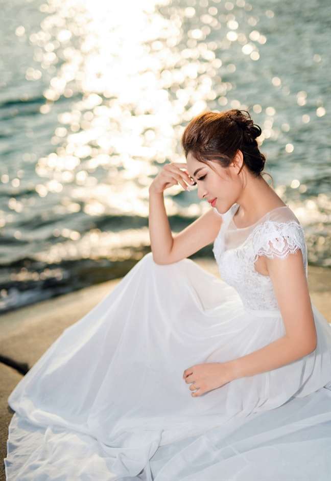 Đầm cưới đẹp lãng mạn của Hoa hậu đại dương Đặng Thu Thảo trên biển
