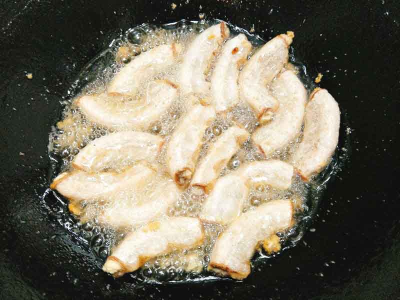 Đặt chảo cho nhiều dầu vào đun cho dầu nóng, tiếp theo bạn gắp lòng cho vào chiên tới khi lòng chín, hơi sém vàng là vớt ra để cho ráo dầu.