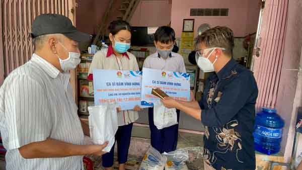 Đàm Vĩnh Hưng vừa chia sẻ hình ảnh anh đến từng nhà trao các suất học bổng cũng như động viên những em học sinh không may mất đi người thân trong mùa dịch. Nam ca sĩ viết: “Khó mà liệt kê hết những thiệt hại nặng nề do Covid-19 gây ra, nhưng nỗi đau mất cha mẹ của nhiều đứa trẻ, khiến các con phải bơ vơ trong giai đoạn này, thật sự khiến chúng ta ai cũng rất đau lòng. Một chút cảm thương và thấu hiểu những khó khăn của các con, nên Hưng đã mạnh dạn nhận lo tiền học cho 100 bé tiếp tục học hết lớp 12. Vậy là trong 6 năm, Hưng sẽ chịu trách nhiệm lo học phí cho các con. Chú Hưng sẽ hết sức cố gắng để chu toàn việc này”.