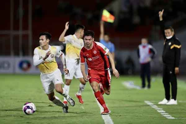 Trương Văn Thiết (áo đỏ) chơi chắc chắn ở hàng thủ Viettel