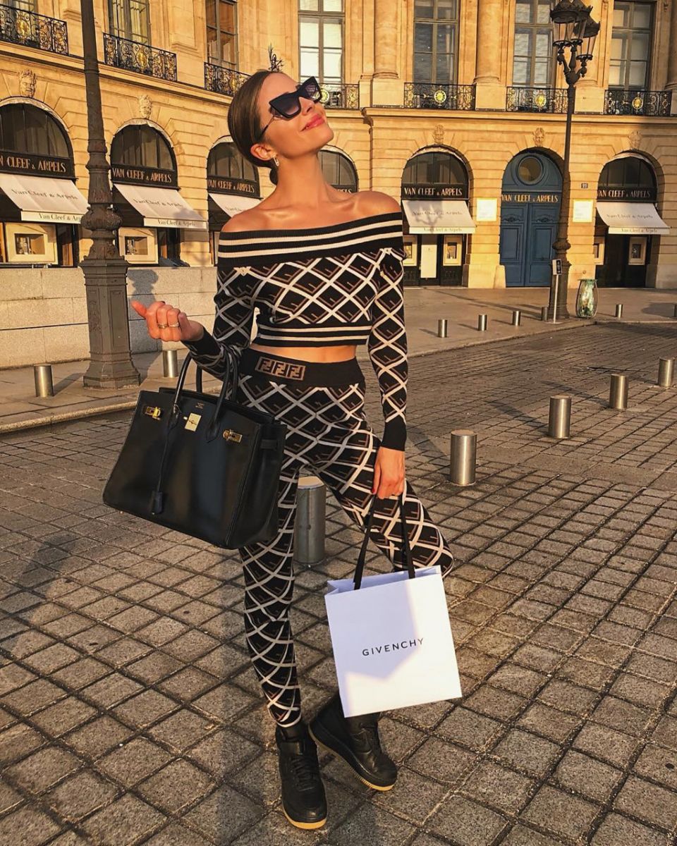 Cựu hoa hậu Hoàn vũ Olivia Culpo thả dáng quyến rũ với bộ đôi crop-top trễ vai và quần bó sát họa tiết tương đồng. Giống như nhiều mỹ nhân khác, một chiếc túi xách đắt đỏ hiệu Hermes là không thể thiếu trong tủ đồ của Culpo.