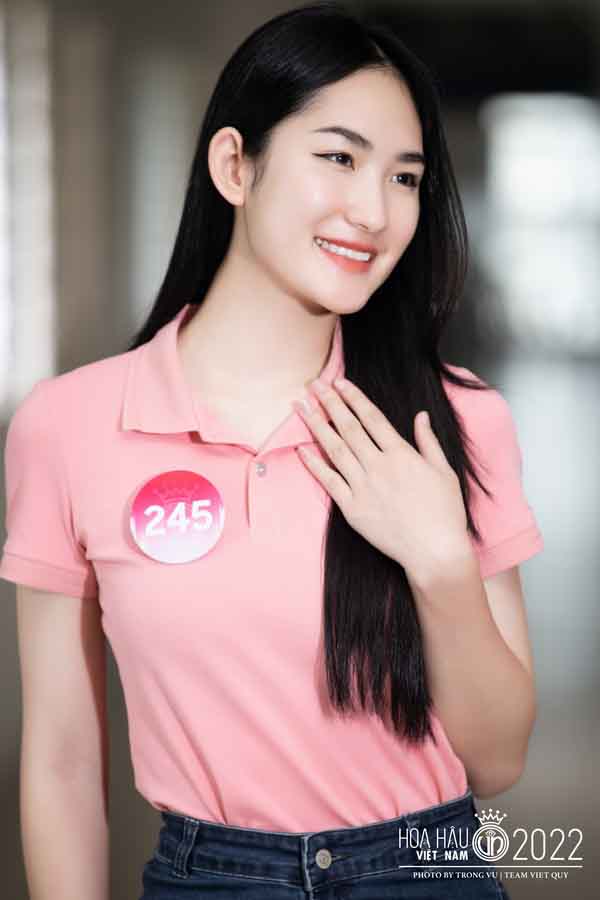 Nguyễn Lê Nhật Quỳnh (SBD: 245) sinh năm 2003, đang học tại trường Đại học Kinh tế Quốc dân, sở hữu ielts 6.5. Cô nàng chia sẻ rằng chiến thắng của Thùy Tiên tại “Miss Grand International 2021” là động lực để cô tham gia cuộc thi sắc đẹp.