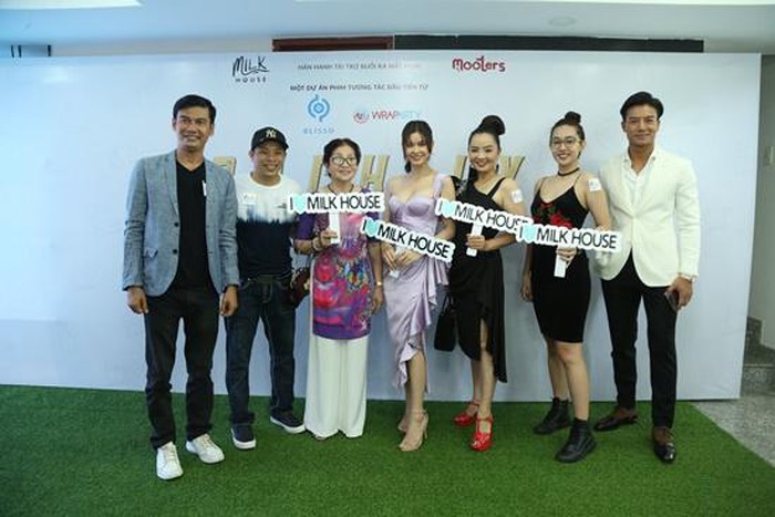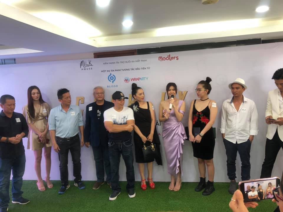 Các diễn viên trong phim từ phải qua: Hiếu Nguyễn, Trương Quỳnh Anh, Hoài An, đạo diễn Bùi Văn Hải và MC, nhà báo Minh Sáng.