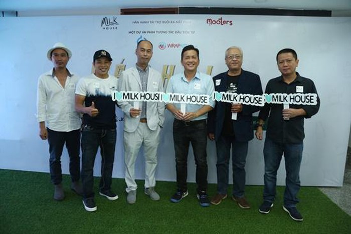 Đạo diễn Bùi Văn Hải với một số nhà tài trợ cho phim “Cách ly”.