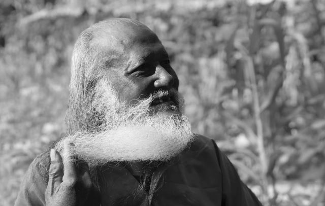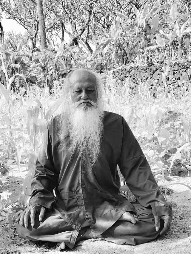 Lão ngư ngồi thiền trên đảo Lý Sơn thần thái đẹp như một tiên ông đạo cốt (Ảnh: Quách Lực)