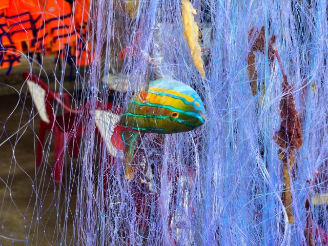 Cá mắc lưới trên đảo Lý Sơn (Ảnh: Quách Lực)
