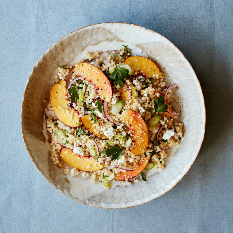 Salad hạt couscous với phô mai feta và đào cùng hành tím