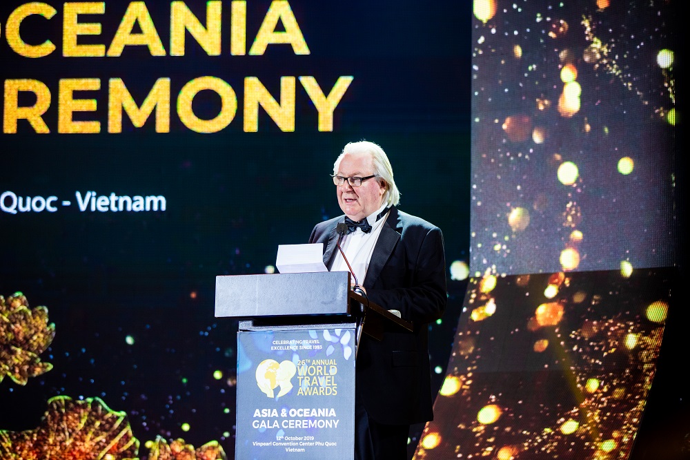 Chào đón các khách mời, nhà sáng lập WTA – Ông Graham Cooke gửi lời cảm ơn đến quần thể Vinpearl Phú Quốc. “Khu nghỉ dưỡng bên bờ biển tuyệt đẹp này chính là địa điểm hoàn hảo cho lễ trao giải hôm nay, nơi vinh danh những tập thể xuất sắc nhất trong lĩnh vực du lịch. Ngành du lịch Việt Nam hiện nay khiến cả thế giới ngưỡng mộ. Từ 2010, số lượng khách quốc tế đã tăng gấp 3 lần với hơn 15 triệu khách vào năm 2018; doanh thu ngành du lịch đạt 26,75 tỷ Đô-la Mỹ vào năm ngoái, tăng gần 5 tỷ so với năm 2017. Lễ trao giải là dấu mốc quan trọng của ngành du lịch thế giới và Việt Nam đã nắm lấy cơ hội tuyệt vời này”. ông Graham Cooke nhấn mạnh.
