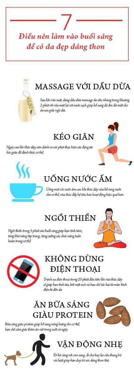 Những việc làm cần thiết này vào buổi sáng sẽ có tác động tích cực đối với vóc dáng cũng như làn da của phụ nữ. Bạn đừng vội bỏ qua mà hãy thực hành ngay sẽ thấy kết quả hữu hiệu.