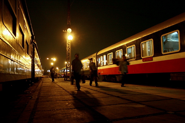 Ga Hà Nội rực sáng ánh đèn suốt đêm đưa đón những chuyến tàu.