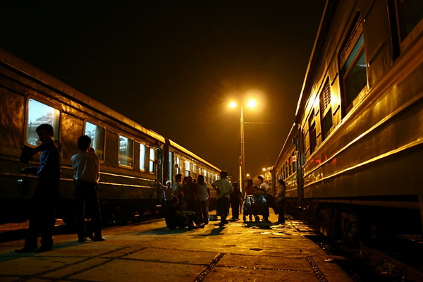 Những hình ảnh sau ghi lại cảnh sân ga đêm ở ga Hà Nội, một trong những ga lớn nhất của ngành đường sắt Việt