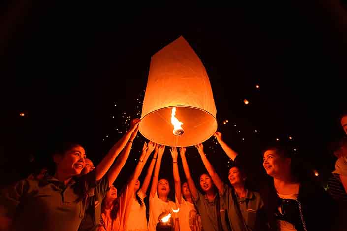 Đèn hoa đăng hay đèn thả thường được dùng trong các sự kiện lớn, đáng chú ý nhất là Lễ hội Thuyền Rồng. Có vai trò như đèn trời nhưng đèn thả có hình dáng đa dạng như hoa sen hay trái tim.