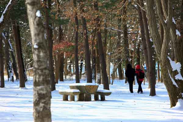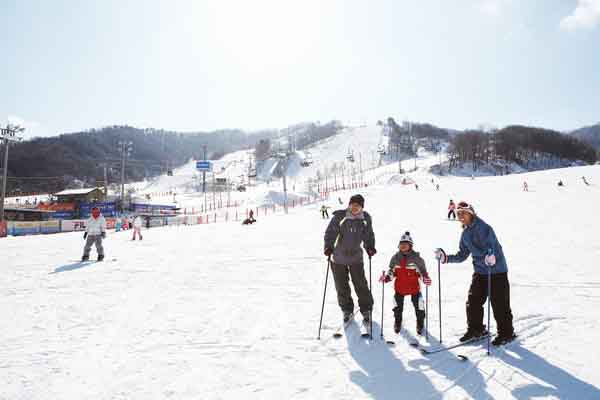Từ Nami chạy xe thêm chừng 20 phút là tới tỉnh Gangwon, nơi đầu tiên đón mùa đông của Hàn Quốc, thiên đường của những resort trượt tuyết. Muốn biết người Hàn Quốc yêu thích trượt tuyết tới mức độ nào, phải tới Gangwon. Khu trượt truyết đông vui như hội, khách du lịch và người bản địa hòa vào nhau. Những bộ áo trượt tuyết màu tươi rực rỡ xuất hiện ở khắp nơi trông rất vui mắt. Mấy em bé chỉ cao hơn đầu gối người lớn đã bắt đầu tập trượt, trông lũn chũn như những chú chim cánh cụt, hai má bị lạnh đỏ hồng lên như trái đào, nhìn đáng yêu “hết nấc”. Trượt tuyết cũng không khó như nhiều người tưởng. Đầu tiên, phải chọn được bộ giày và ván trượt vừa chân rồi học nhanh những cách đi giày, tháo ván trượt, cách bật nghiêng người tránh chấn thương khi bị ngã, cách giảm tốc hay dừng lại. Sau 10 – 15 phút học lý thuyết, huấn luyện viên sẽ thả bạn ra đường trượt dành cho người mới bắt đầu và chỉ nửa tiếng sau đã có người lướt vun vút trên dốc tuyết y như dân nhà nghề sành sỏi.