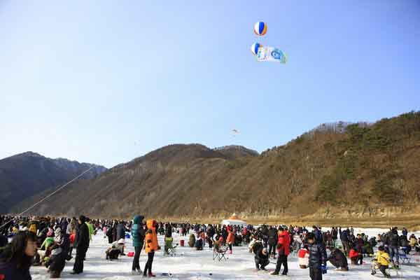 Nếu đến Gangwon vào tháng 1, còn có thể dự hội câu cá hồi Hwacheon Sancheon. Hội mở từ ngày 4 – 26/1 hàng năm, thu hút khá nhiều khách du lịch. Lễ hội diễn ra trên mặt sông đã đóng một tầng băng dày, vô cùng rắn chắc và người tham gia hội phải đào mặt băng thành những hố nhỏ để thả câu hay vợt xuống bắt cá hồi. Ai bắt được cá hồi nhiều nhất trong ngày sẽ là người thắng cuộc. Cá hồi vùng Hwacheon là giống cá hồi nước ngọt đặc sản nổi tiếng của Gwangwon, chỉ sống ở những vùng nước nhiệt độ trung bình dưới 20 độ C nên không bao giờ thấy xuất hiện khi tiết trời ấm áp. Du khách chơi hội có thể thưởng thức món gỏi cá hồi hay cá hồi nướng ngon tuyệt vời nhưng điều thú vị nhất trong lễ hội Hwacheon chính là niềm vui tràn ngập sự hồn nhiên của trẻ thơ khi bạn bắt cá thành công, một chiến lợi phẩm rất xứng đáng sau nỗ lực chờ đợi. Ngoài câu cá, lễ hội Hwacheon còn có triển lãm băng đăng, các trò chơi trượt tuyết thú vị để bạn luôn cảm thấy hào hứng, vui thích và quên đi mọi giá lạnh của mùa đông.
