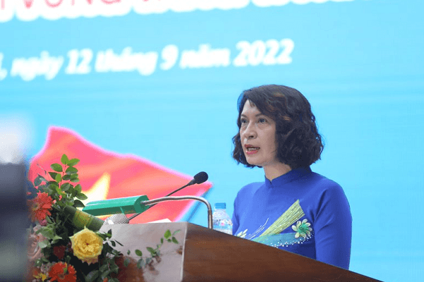 Thứ trưởng Bộ Y tế Nguyễn Thị Liên Hương phát biểu tại Lễ phát động chiến dịch truyền thông phòng chống dịch COVID-19 trong tình hình mới với chủ đề “Vì một Việt Nam vững vàng và khỏe mạnh” vào chiều nay (12.9) – Ảnh: PV