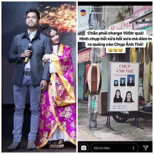 Dòng trạng thái ghi lại cảnh một cửa tiệm sử dụng hình ảnh Diễm My để quảng cáo, kèm theo lời bông đùa “như thế này chắc phải đòi phí 100 triệu” đang khiến cư dân mạng sục sôi.