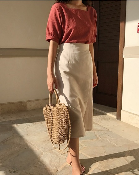 Áo cổ vuông kết hợp cùng tay phồng nhẹ sẽ đem lại sự nữ tính bất ngờ. Ngày hè mà diện những bộ váy áo thế này thì không chỉ mát mẻ mà còn rất “bay bổng” nữa nhé!