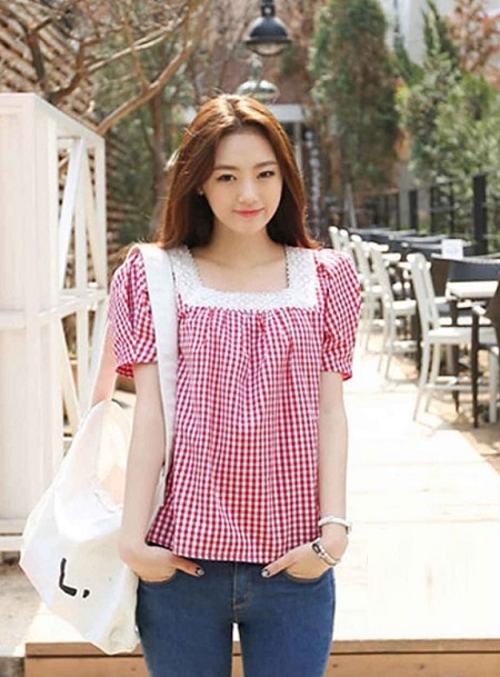 Áo cổ vuông luôn giúp các bạn gái khoe xương quai xanh gợi cảm. Vơi các nàng đầy đặn, kiểu áo cổ vuông thoáng mát cũng tạo cảm giác gầy hơn.