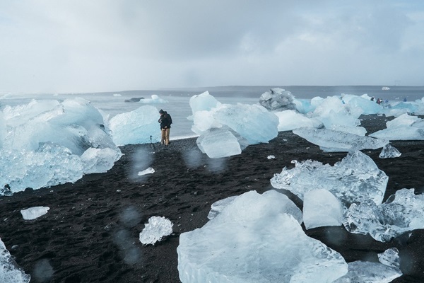 Các tảng băng dạt vào bờ biển tạo nên “bãi biển trong suốt” tại Iceland.