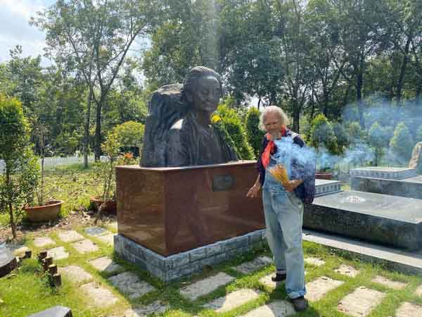 Điêu khắc gia – Phạm Văn Hạng đang thắp hương trước tượng nhạc sĩ Phạm Duy (Ảnh: Đỗ Duy Ngọc)