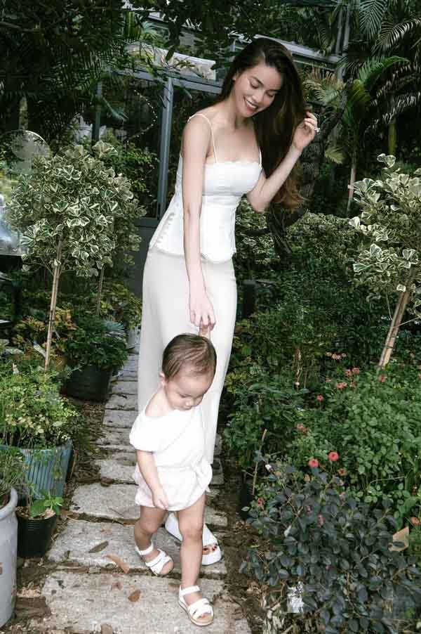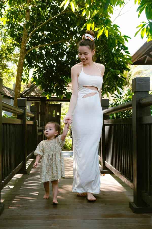 Hồ Ngọc Hà luôn rạng ngời trong chiếc đầm có chất liệu vải lanh ngay cả những lúc trở thành người phụ nữ của gia đình.