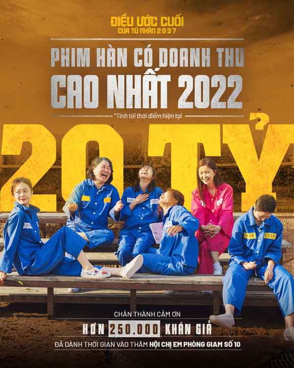 “Điều ước cuối của tù nhân 2037” trở thành phim Hàn Quốc có doanh thu cao nhất năm 2022 tại Việt Nam.