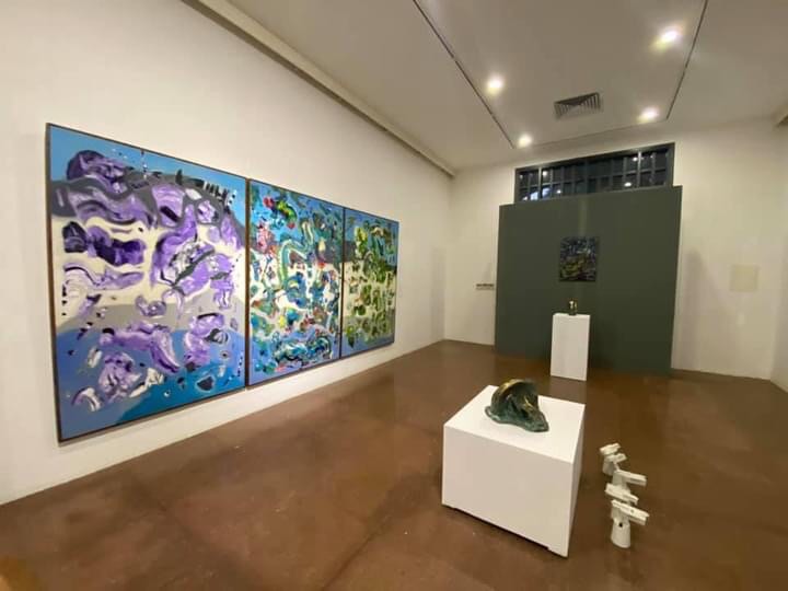 Tranh tượng họa sĩ Đinh Phong tại triển lãm “Người bay và giấc mơ siêu thực” Trường Mỹ thuật Yết Kiêu – Hà Nội, tháng 11.2020.