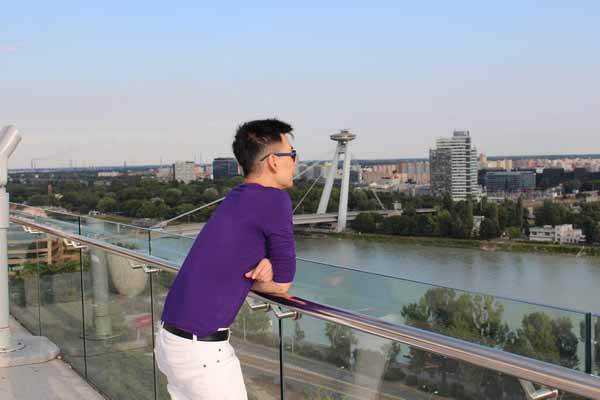 Qua cầu treo, đi thang máy lên đỉnh tháp UFO và chiêm ngưỡng sự tráng lệ khi bóng hoàng hôn đổ dần lên thành phố Bratislava tại Slovakia. (Hình ảnh: Đạt Nguyễn)