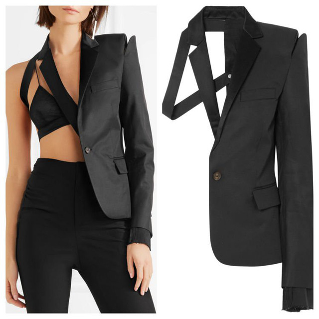 Chiếc áo chỉ có một nửa là áo khoác, nửa còn lại là dây đai để lộ phần nội y giữ cho áo khỏi tuột. Và dù có thiết kế thiếu vải, chiếc áo có giá đến 1450 đô la Mỹ.