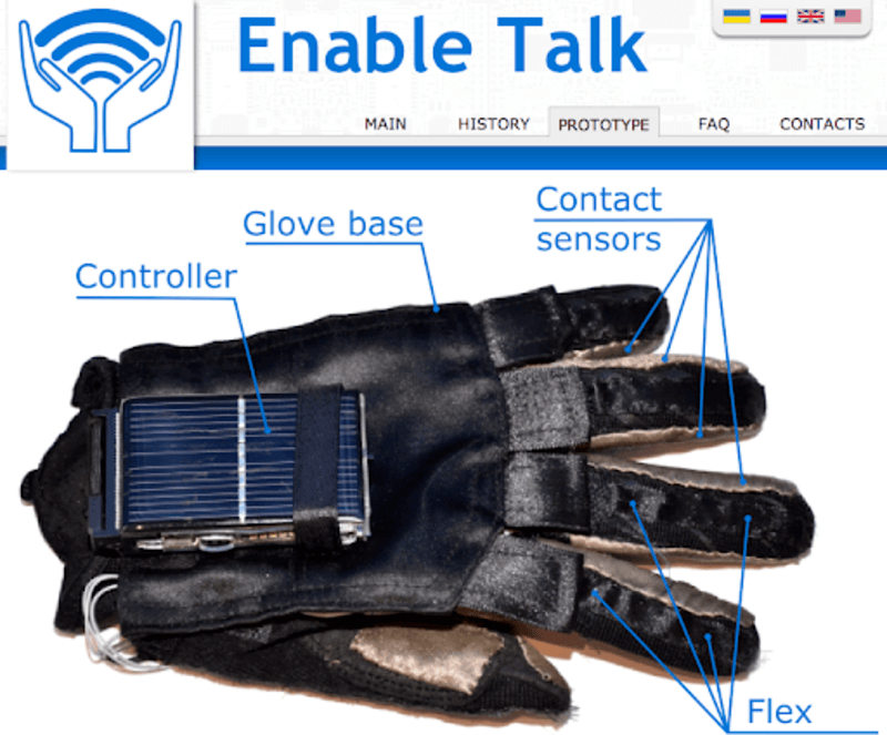 Găng tay “Doraemon” chuyển đổi ngôn ngữ ký hiệu thành lời nói Ảnh: Enable-Talk