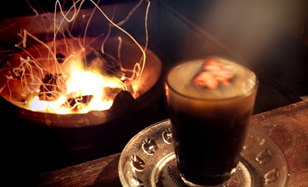 Độc đáo ly cà phê kèm than cháy hừng hực
