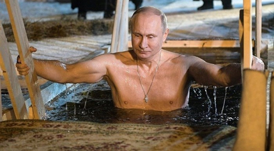 Hình ảnh Tổng thống Nga Putin dù đã 65 tuổi cũng tham gia nghi lễ tắm lạnh