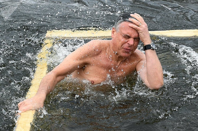 Đại sứ Mỹ tại Nga cũng “nhập gia tùy tục” – tắm trong hồ giá lạnh dịp lễ này