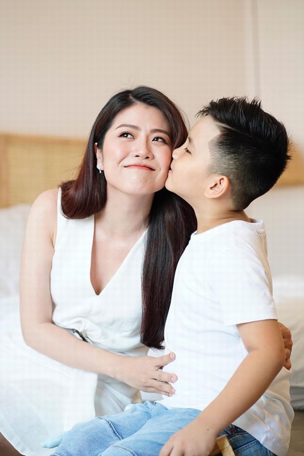 Yêu thương và sự chiều chuộng nó ngăn cách nhau bởi một ranh giới rất là mỏng manh. Trong nhà, Ông xã tôi sẽ giữ vai trò nghiêm khắc với con. Còn tôi sẽ là người dùng tình cảm để phân tích cho con hiểu, hoá giải bớt sự nghiêm khắc, cứng rắn dành cho con để con được sống trong một môi trường vẫn phải có nguyên tắc, nề nếp của gia đình, nhưng quan trọng vẫn cảm nhận được tình cảm yêu thương đong đầy.