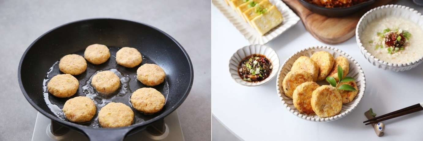 Dùng tay vo thành từng viên tròn như hình chiếc bánh. Rồi đợi chảo dầu sôi thì cho viên đó vào chiên đến khi vàng đều hai mặt.
