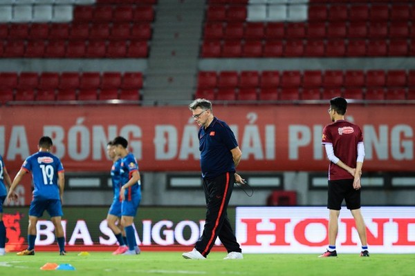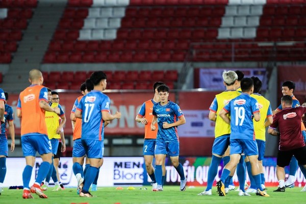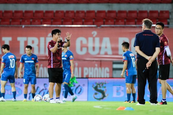 Buổi tập của HLV Troussier gồm 29 cầu thủ mà ông đã điền tên vào danh sách, trong đó có 25 tuyển thủ quốc gia và 4 cầu thủ bổ sung từ đội U.23, gồm hậu vệ Tuấn Tài, các tiền vệ Văn Toản và Văn Khang, bên cạnh tiền đạo Văn Tùng. Trong thành phần đội tuyển Việt Nam, đáng tiếc là sự thiếu vắng mang tên Tiến Linh, do chân sút sinh năm 1997 chưa bình phục chấn thương cơ. Việt Hưng cũng không thể đi Hải Phòng cùng đội, mà ở lại để kiểm tra tình hình chấn thương.
