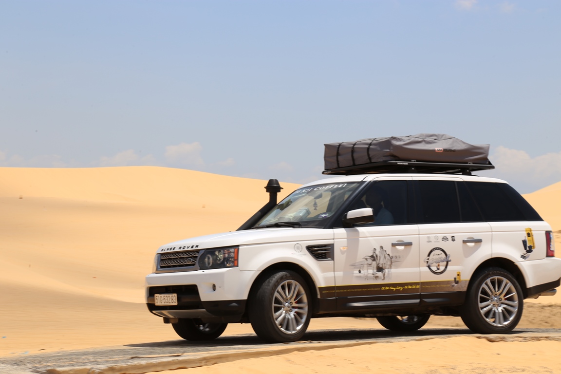 Cũng trong ngày 1.7, tại Bàu Trắng, địa danh nổi tiếng của Việt Nam với các dải bờ cát trắng dài miên man, đoàn xe Land Rover độ ống thở chuyên nghiệp cũng được dịp thử thách khả năng đi trên địa hình cát. Một trải nghiệm hoàn toàn mới lạ với các thành viên trong đoàn. “Tuy đã từng cầm lái Land Rover qua mọi cung đường của Việt Nam, nhưng lái xe trên đồi cát, địa hình off-road thì đây mới là lần đầu, mình chưa có kinh nghiệm và kỷ năng xử lý các tình huống sa lầy” – một tài xế cho biết.