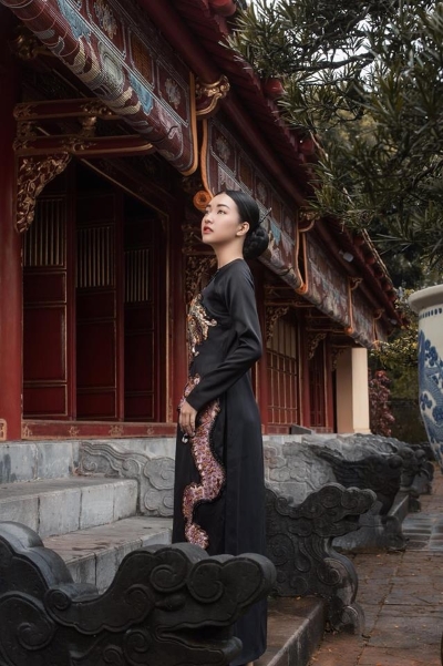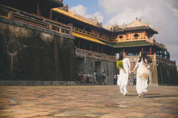 Áo dài trắng duyên dáng trước di tích Hoàng thành Huế