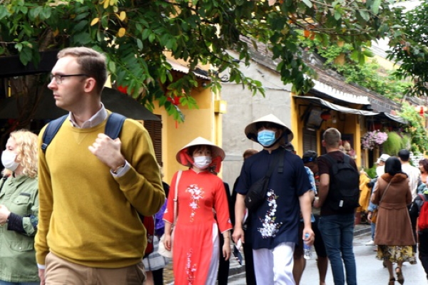 Du khách tham quan Hội An được phát khẩu trang miễn phí