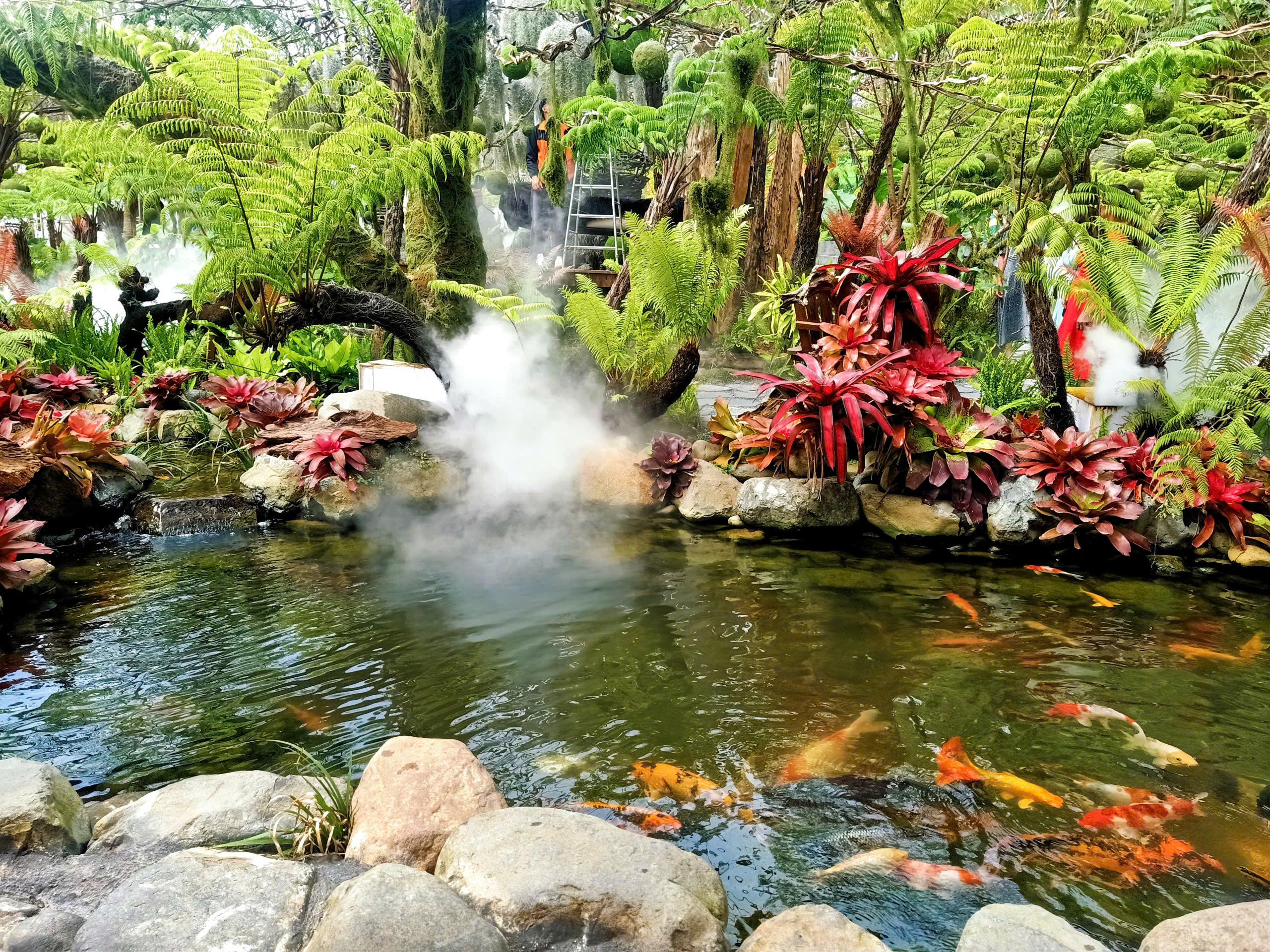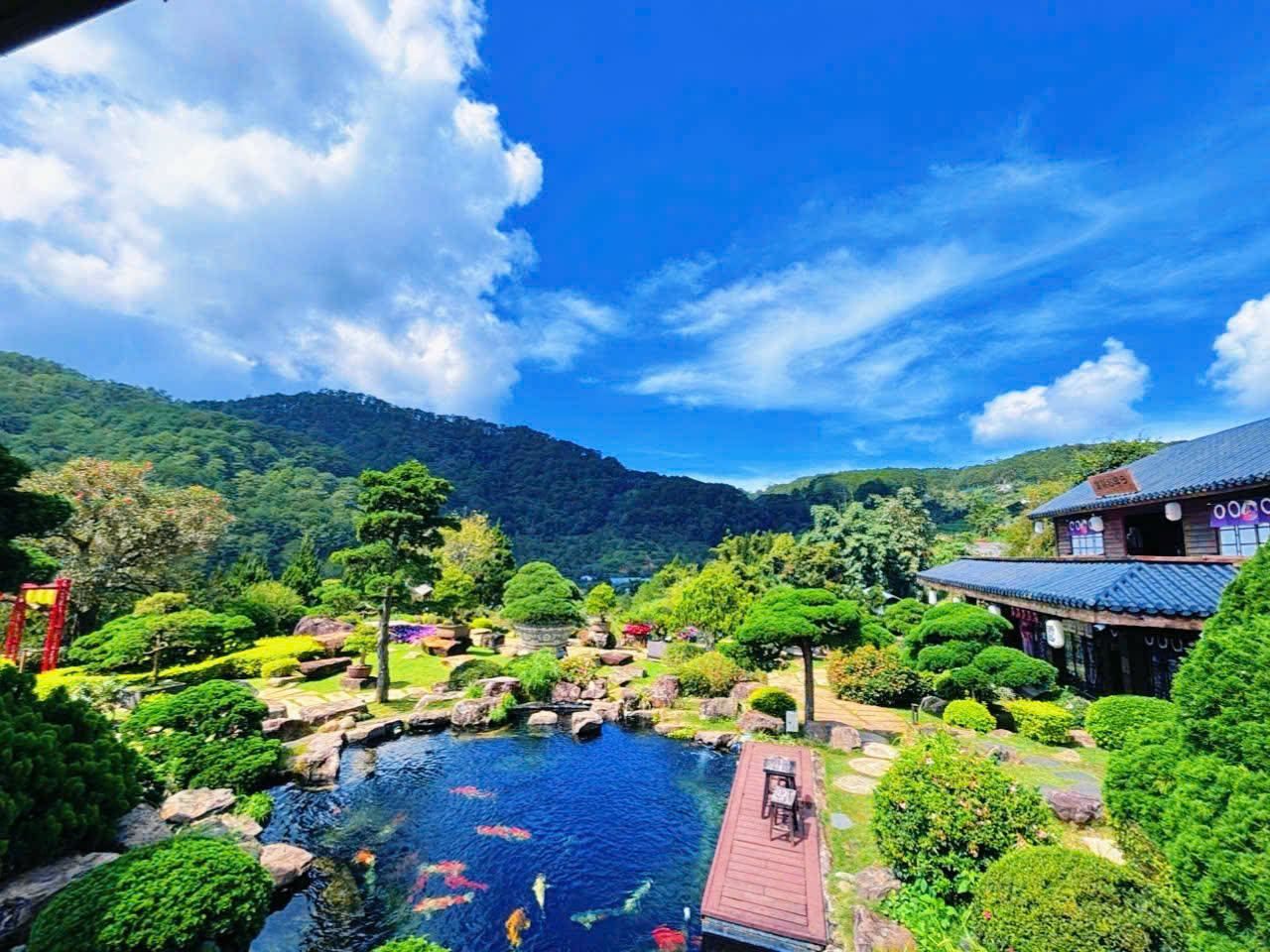 Ngắm nhìn từ trên cao, tôi thỏa thích dõi mắt trông ra xa. Không gian mở ra rộng lớn, bao la đến vô tận. Bầu trời cao vời vợi, trong xanh với những đám mây trắng lững lờ trôi. Những dãy núi được bao phủ bởi những hàng thông xanh mướt. Mặt trời từ từ lên cao tỏa ra hơi ấm áp, xua đi giá lạnh của buổi sớm. Từng tia nắng tinh nghịch len lỏi xuyên qua kẽ lá chiếu rọi xuống mặt đất lấp lánh. Những chậu bonsai được tỉa tót, chăm sóc tỉ mỉ bởi những người thợ làm vườn khéo léo. Ở giữa là một hồ nước trong xanh, mát rượi với những chú cá Koi tung tăng bơi lội. Khung cảnh ấy đẹp đến mức tôi mải mê ngắm nhìn, quên cả thời gian trôi.