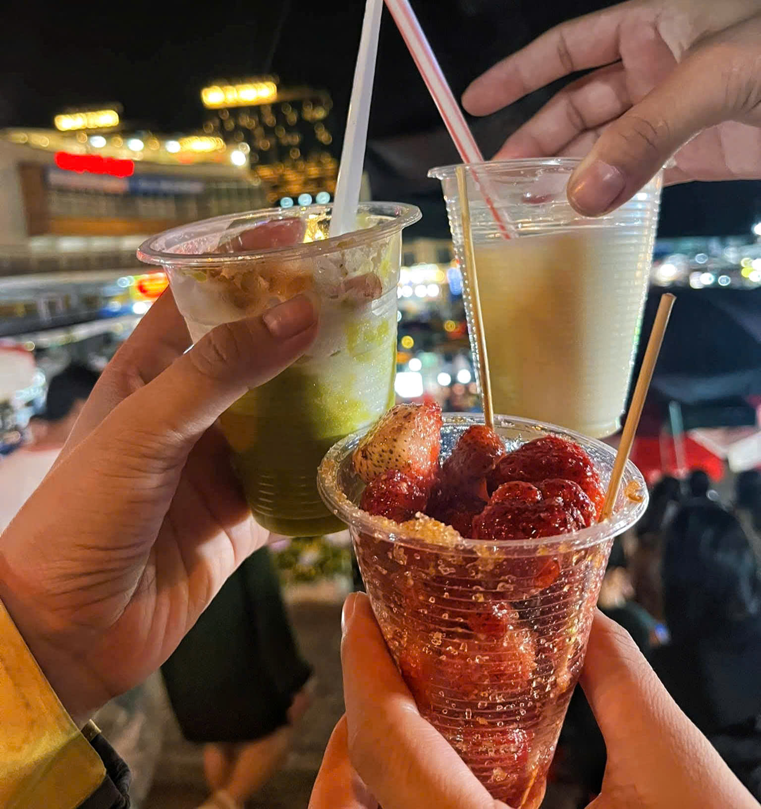 Còn gì thú vị hơn khi được thưởng thức những món ăn vặt ngon giữa lòng chợ đêm Đà Lạt - Ảnh: HaoKhanh