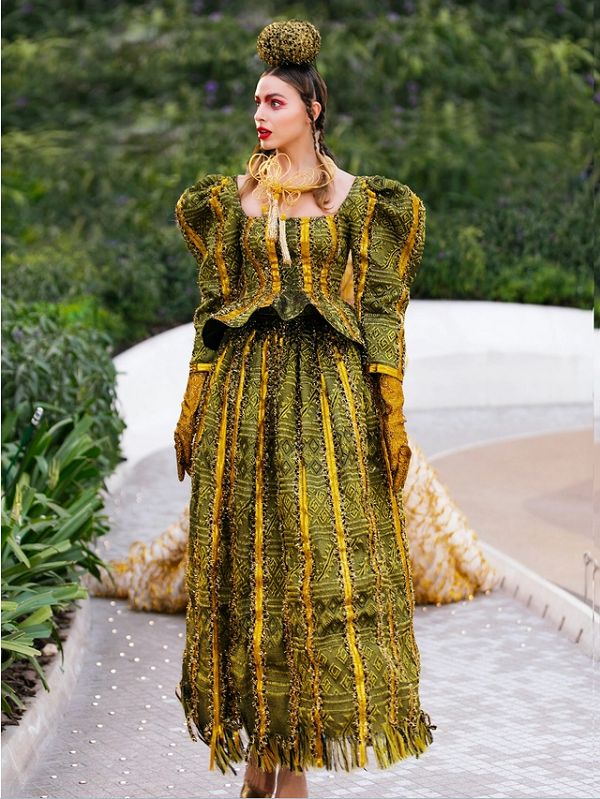 Bộ trang phục làm bằng thổ cẩm H’rê xuất hiện trên sàn diễn thời trang tại triển lãm thế giới Expo.