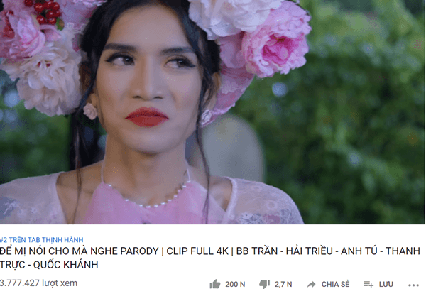 MV Parody Để Mị Nói Cho Mà Nghe phiên bản miền Tây Nam Bộ của BB Trần dựa trên MV đình đám thời gian qua của Hoàng Thùy Linh. Đúng 19 giờ 1/8 (sau một ngày ra mắt), MV lọt thẳng top 2 Youtube Việt Nam với gần 4 triệu veiw. Đây là thành tích cực khủng trong làng giải trí.