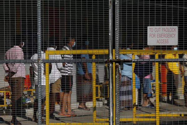Phát thức ăn cho người dân lao động Singapore tại khu cách ly
