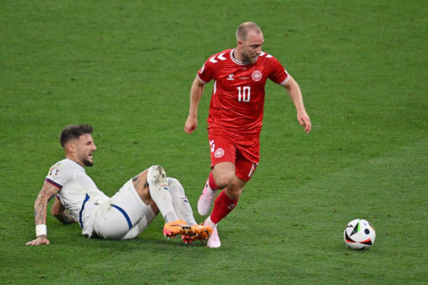 Bên kia chiến tuyến, Đan Mạch cũng gặp những khó khăn riêng. Hàng công của họ tỏ ra bế tắc khi chưa có tiền đạo nào ghi bàn sau 3 trận vòng bảng. Lối đá phòng ngự chặt và phản công nhanh của HLV Kasper Hjulmand đặt rất nhiều gánh nặng lên hàng tiền vệ, đặc biệt là Christian Eriksen. Eriksen là trung tâm của mọi pha tấn công và là một trong hai cầu thủ ghi bàn cho Đan Mạch đến thời điểm này.