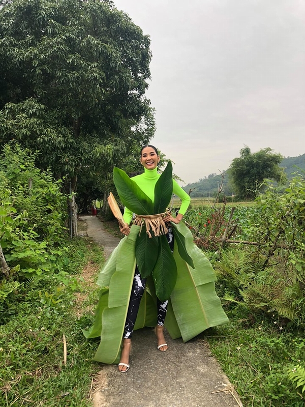 Fans ‘chết cười’ khi thấy Hoàng Thùy sáng tạo trang phục dân tộc…từ lá chuối