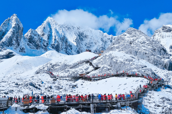 Ở Lệ Giang, không thể không biết đến ngọn núi tuyết hùng vĩ Ngọc Long, gồm 13 đỉnh núi tất cả, đỉnh cao nhất đạt 5.596m. Các đỉnh núi quanh năm phủ tuyết, nhìn từ xa giống một con rồng bằng ngọc trắng nên được gọi Ngọc Long tuyết sơn. Du khách muốn lên Ngọc Long có thể dùng cáp treo lên đến độ cao 2.506m rồi đi bộ thêm một đoạn để tới lên tới độ cao 4.680m. Người Lệ Giang có tục treo chuông gió cầu phúc. Chuông được đúc bằng đồng, đính kèm một miếng gỗ mỏng để ghi các điều ước. Trên đỉnh núi tuyết Ngọc Long, bạn cũng sẽ bắt gặp cả ngàn chiếc chuông gió cầu phúc treo trên các hành lang gỗ lồng lộng gió núi.