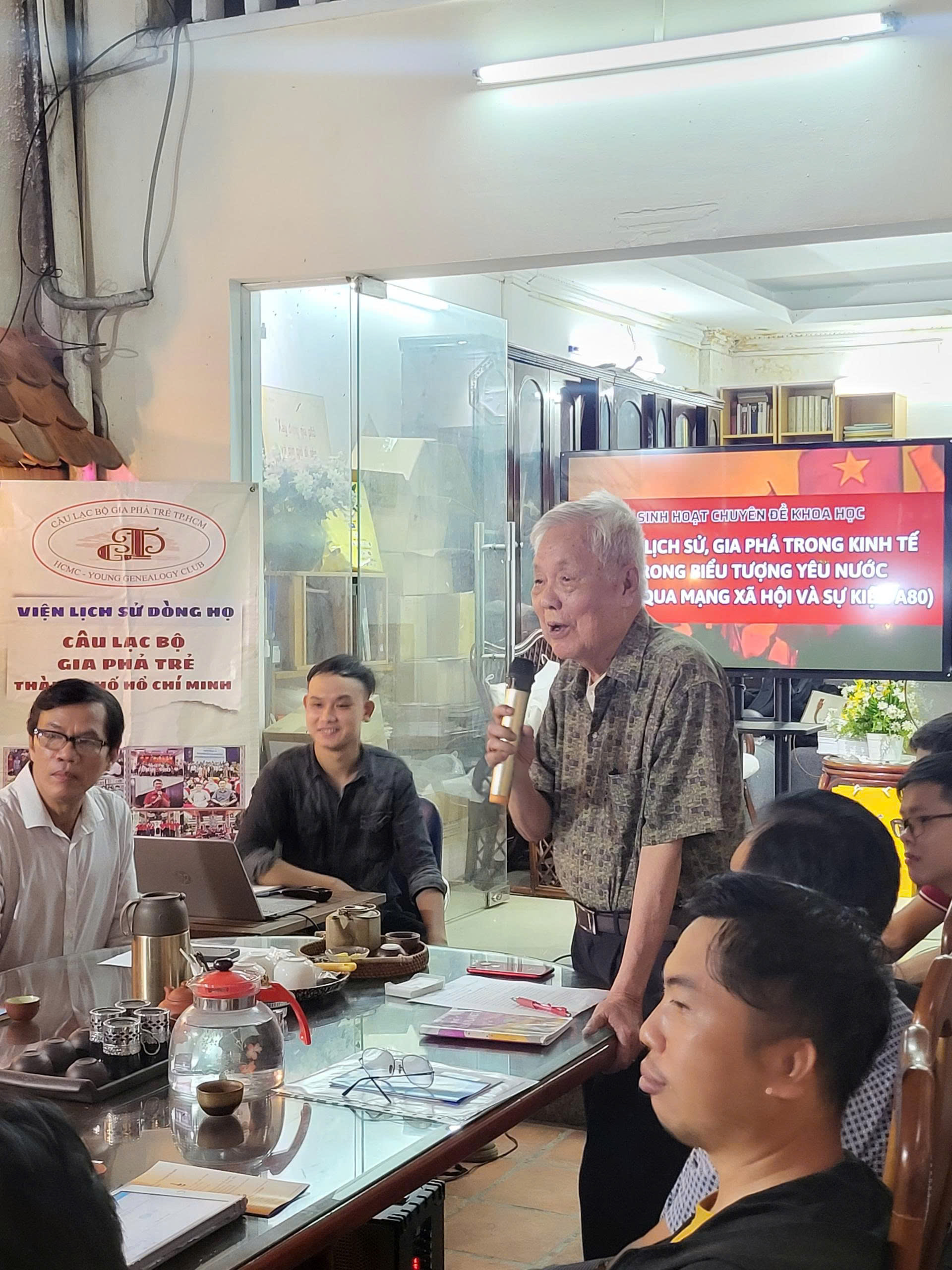 Từ mạch nguồn ấy, cuối tháng 9 vừa qua, Câu lạc bộ Gia phả Trẻ TP.HCM đã tổ chức chuyên đề khoa học: "Giá trị lịch sử, gia phả trong kinh tế & biểu tượng yêu nước (thông qua mạng xã hội và sự kiện A80)". Đây là một sự kiện quan trọng, vừa mang tính học thuật, vừa mang tính xã hội, nhằm khai thác sâu sắc vai trò của lịch sử và gia phả trong đời sống đương đại, đồng thời tìm kiếm những phương thức mới để đưa giá trị này đến gần hơn với thế hệ trẻ.