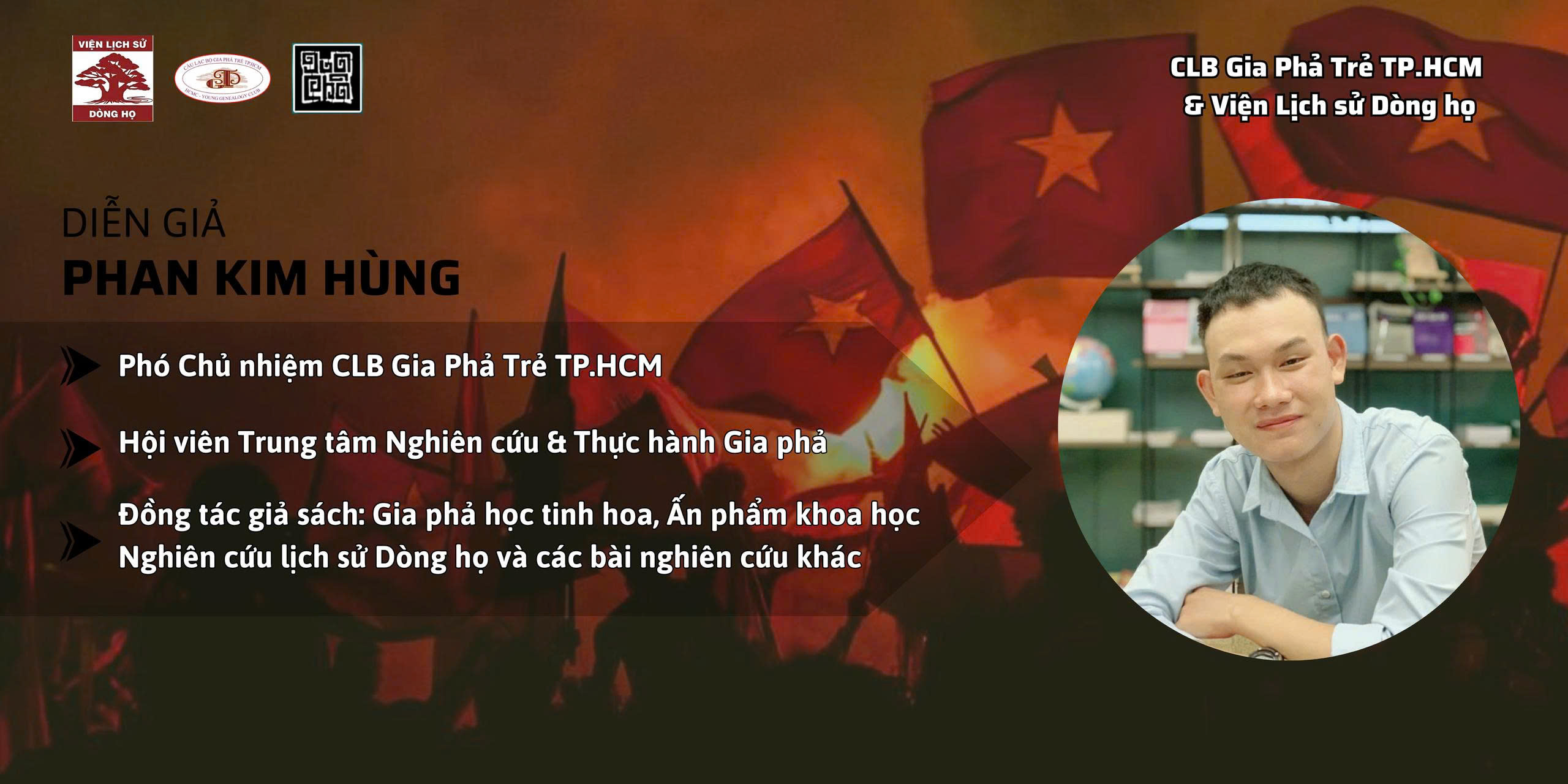 Báo cáo viên chính của chương trình là anh Phan Kim Hùng - Phó Chủ nhiệm CLB Gia phả Trẻ TP.HCM, hội viên Trung tâm Nghiên cứu & Thực hành Gia phả, đồng thời là đồng tác giả của các công trình Gia phả học tinh hoa, Nghiên cứu lịch sử dòng họ và nhiều ấn phẩm chuyên sâu khác. Với kiến thức và kinh nghiệm thực tiễn trong nghiên cứu gia phả, anh đã mang đến cho khán phòng nhiều góc nhìn vừa khoa học, vừa gần gũi, khiến lịch sử và gia phả trở thành một đề tài sống động.
