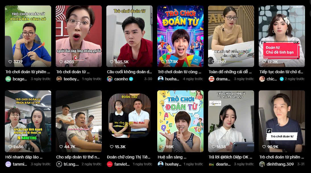 Thực tế, “Trò chơi đoán từ” là một dạng nội dung video ngắn (Shorts/Reels/TikTok) hoặc các bài đăng tương tác trên fanpage. Luật chơi rất đơn giản: Một người đưa ra một câu nói, một ngữ cảnh hoặc một cụm từ bị khuyết một thành phần (thường là danh từ hoặc tính từ), và người còn lại (hoặc khán giả) phải đoán xem từ đó là gì.
